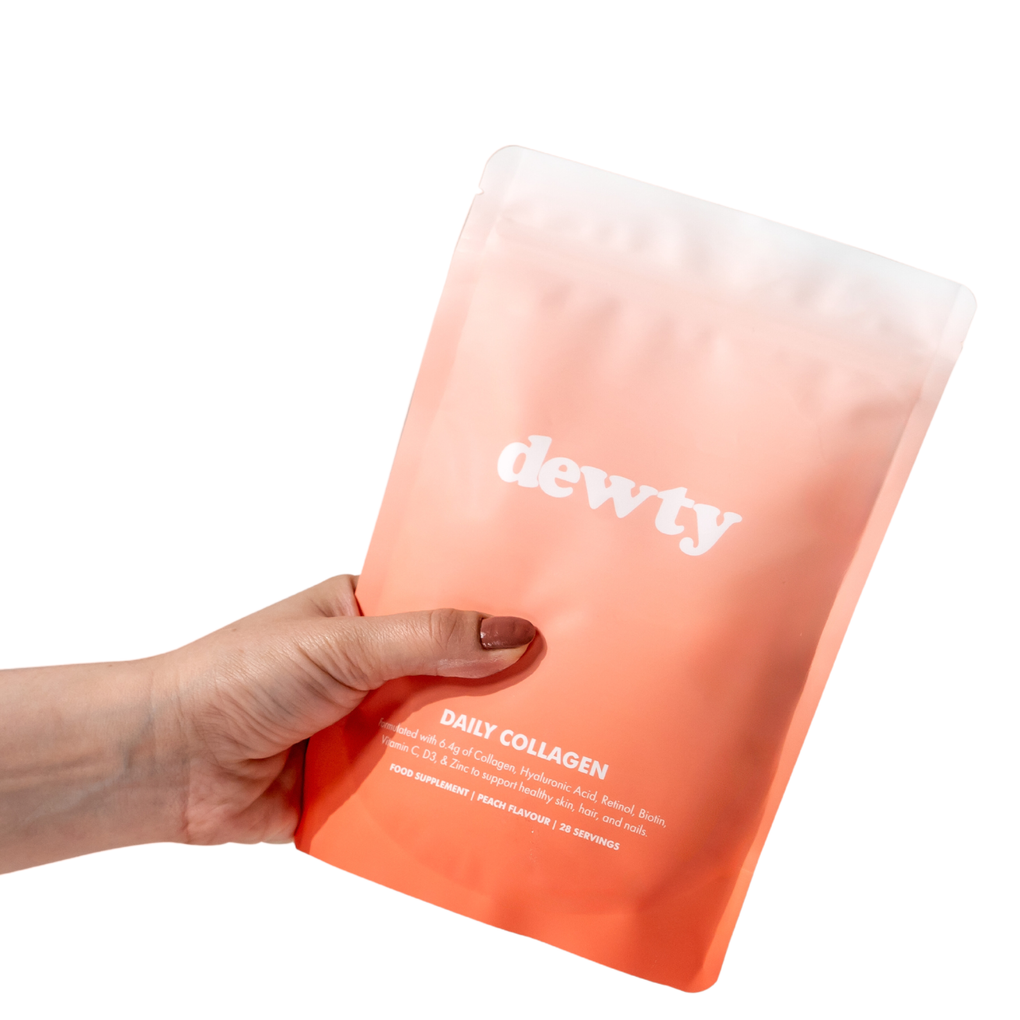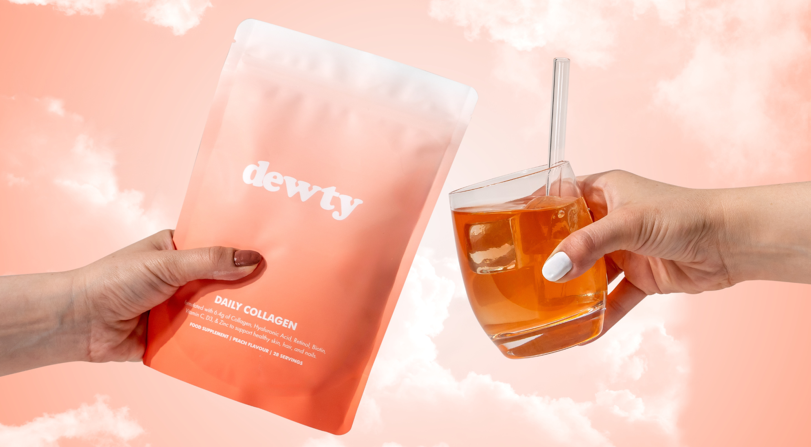 Both forms will give you the benefits of collagen, but powder has a few extra perks. It’s cost-effective, shelf-stable, has less of an environmental impact, and usually contains fewer fillers and additives, making it closer to a pure collagen source than a liquid collagen drink. Plus, you can easily mix it into your favourite drinks. Some powder options, such as our Dewty Daily Collagen, also contain additional health-promoting ingredients that help build and support your natural collagen stores, like vitamin C and hyaluronic acid.
