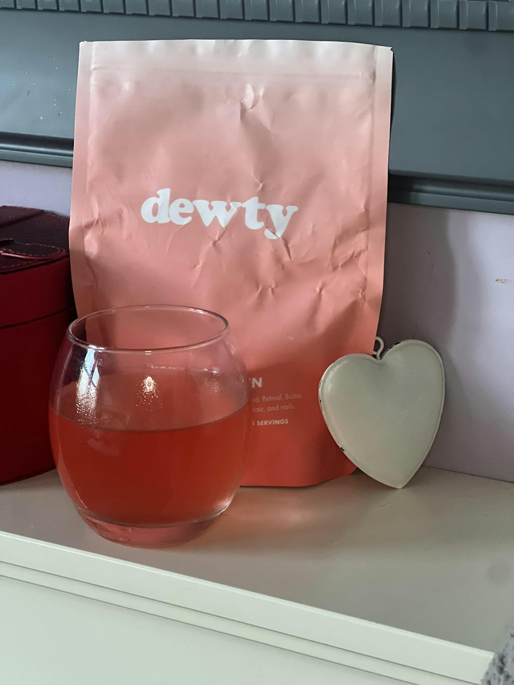 Infused with 6.4g of premium collagen and essential skin vitamins, Dewty works to target fine lines, wrinkles, and lost elasticity.